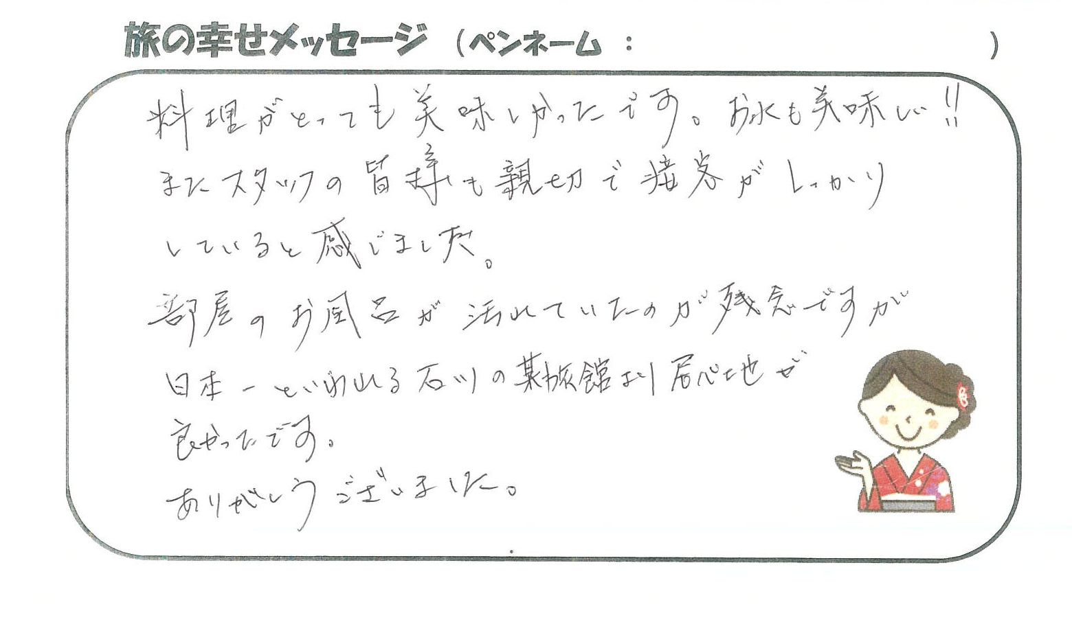 日本一と言われる石川の某旅館より居心地が良かったです。